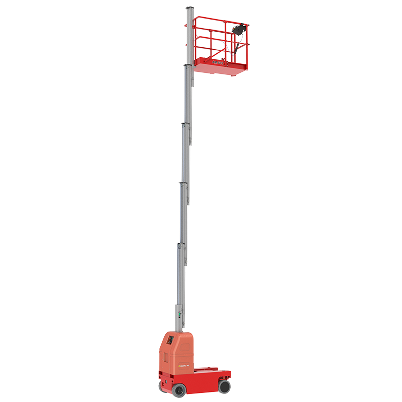 Esta plataforma elevadora autopropulsada de aleación de aluminio de un solo mástil está construida con aleación de aluminio de alta resistencia y ofrece una estructura liviana pero rígida y estable con excelente durabilidad y resistencia a la torsión. Su pequeño radio de giro y su diseño compacto le permiten maniobrar fácilmente en pasajes estrechos y entornos de trabajo complejos, lo que lo hace ideal para aplicaciones en almacenes, fábricas, centros comerciales y aeropuertos. La plataforma cuenta con un sistema de elevación preciso y estable, que garantiza arranques y paradas suaves con una vibración mínima para una mayor seguridad operativa. Su sistema de propulsión eléctrica es energéticamente eficiente, silencioso y de cero emisiones, cumpliendo con los modernos estándares ecológicos y medioambientales. Además, está equipado con múltiples sistemas de protección de seguridad, incluidas alarmas antivuelco, descenso de emergencia y bloqueo automático de frenos, lo que garantiza una seguridad confiable durante operaciones elevadas.