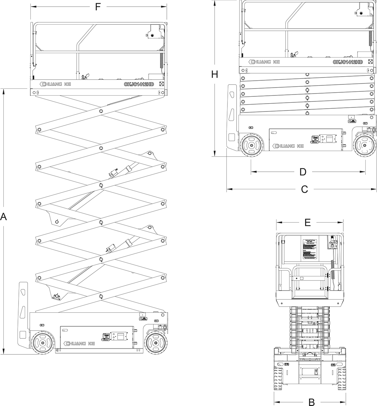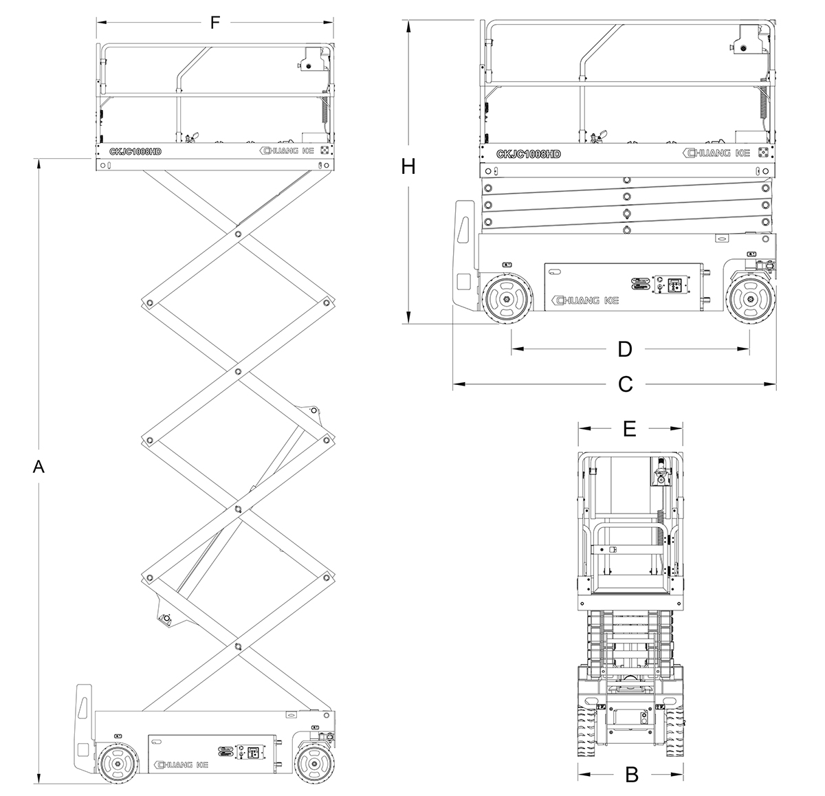 CKJC0806HD CKJC1008HDA (cuerpo estrecho) CKCJ1008HD CKCJ1210HD CKCJ1412HD CKCJ1614HD CKCJ1816HD Plataforma de trabajo aéreo con elevador de tijera autopropulsado hidráulico